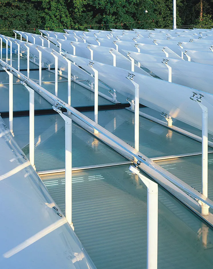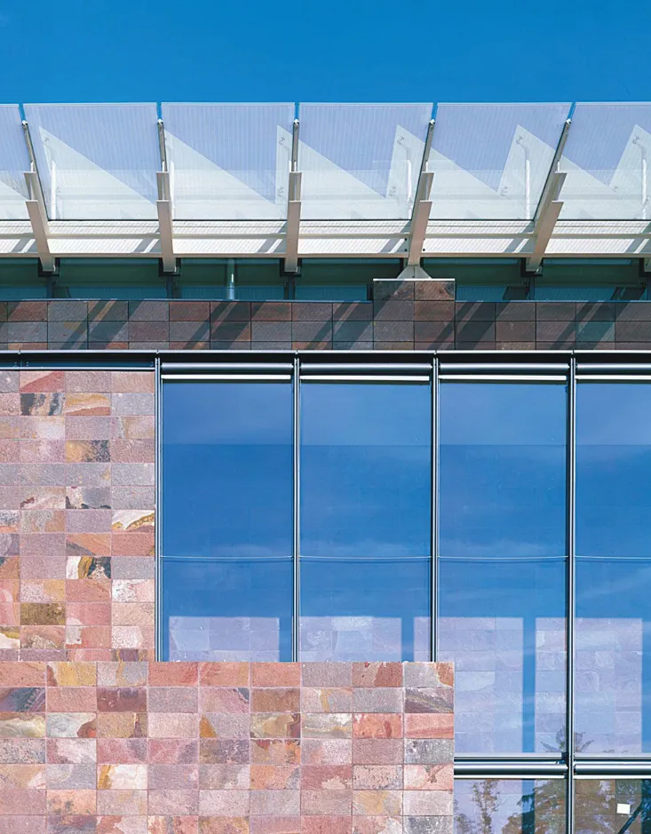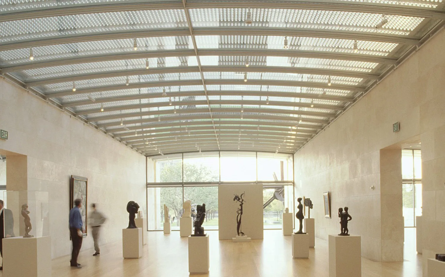 렌조 피아노는 자연광을 미술관 안으로 어떻게 끌어들일지 궁리한 끝에 이중 구조의 지붕을 제안했습니다.