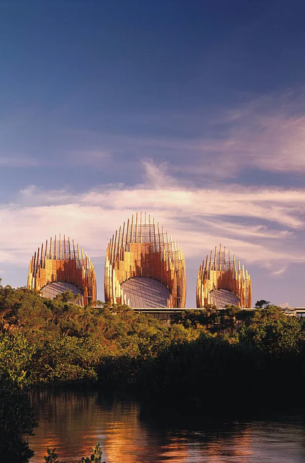 1998년에 완공된 장 마리 지바우 문화 센터는 뉴칼레도니아의 토착 카낙 문화에 대한 헌정입니다.